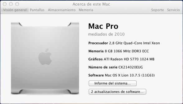Sistema instalado actualmente: 10.9.2 (de origen venía con 10.6)