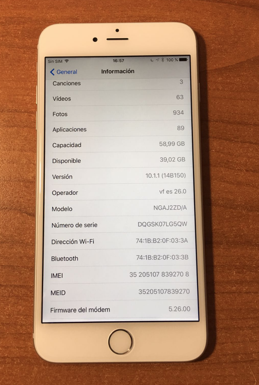 iPhone 6 Plus Se vende iphone 6 Plus de 64 GB. Le quedan 5 meses de garantía aún. Lo vendo porque me he comprado el iphone 7. DQGSK07LG5QW 31141