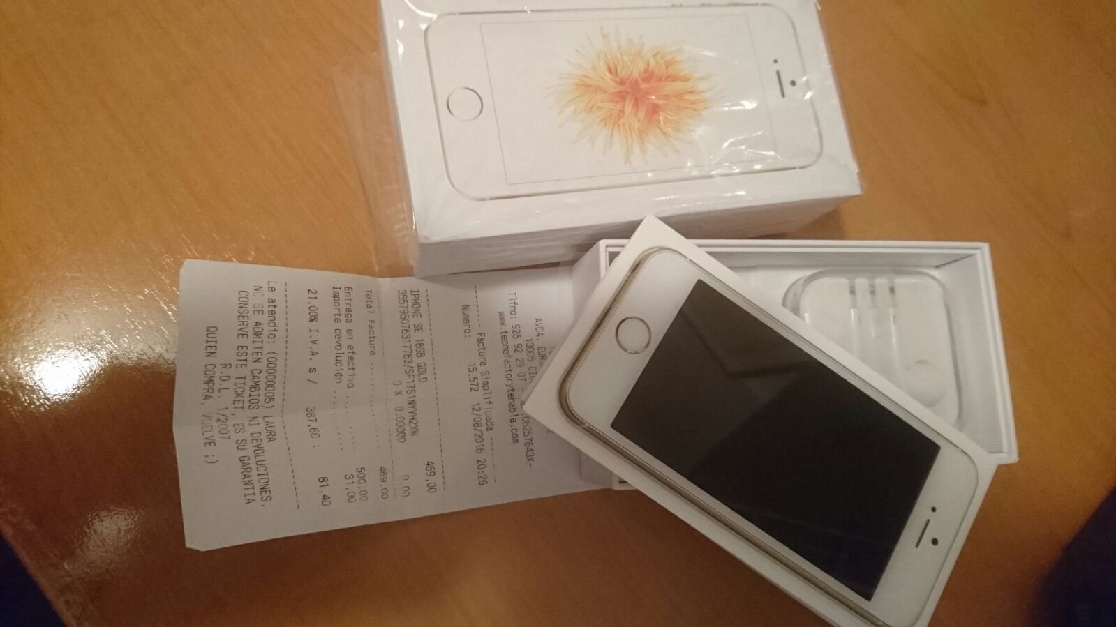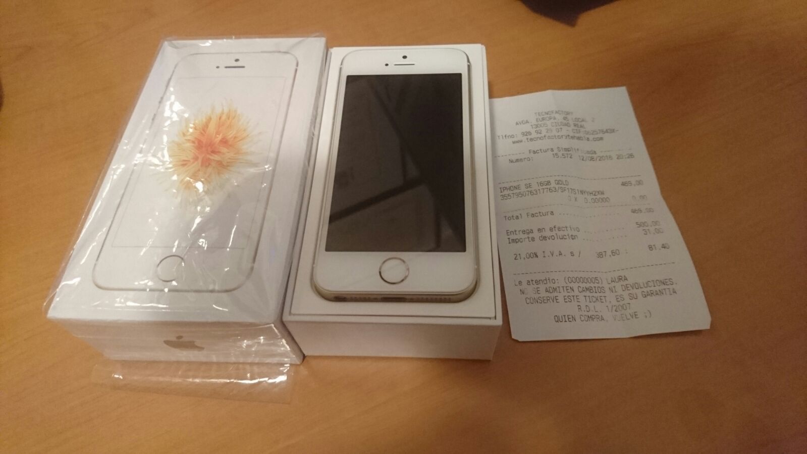 iPhone SE iPhone SE 16 GB color oro, adquirido en agosto de este año. Tiene factura de compra( comprado en EROSKI). Lo vendo por haber adquirido otro terminal. Funciona perfectamente y no tiene ningún rasguño. Se entrega con caja, cable y auric F17S1NYYH2XW 31482