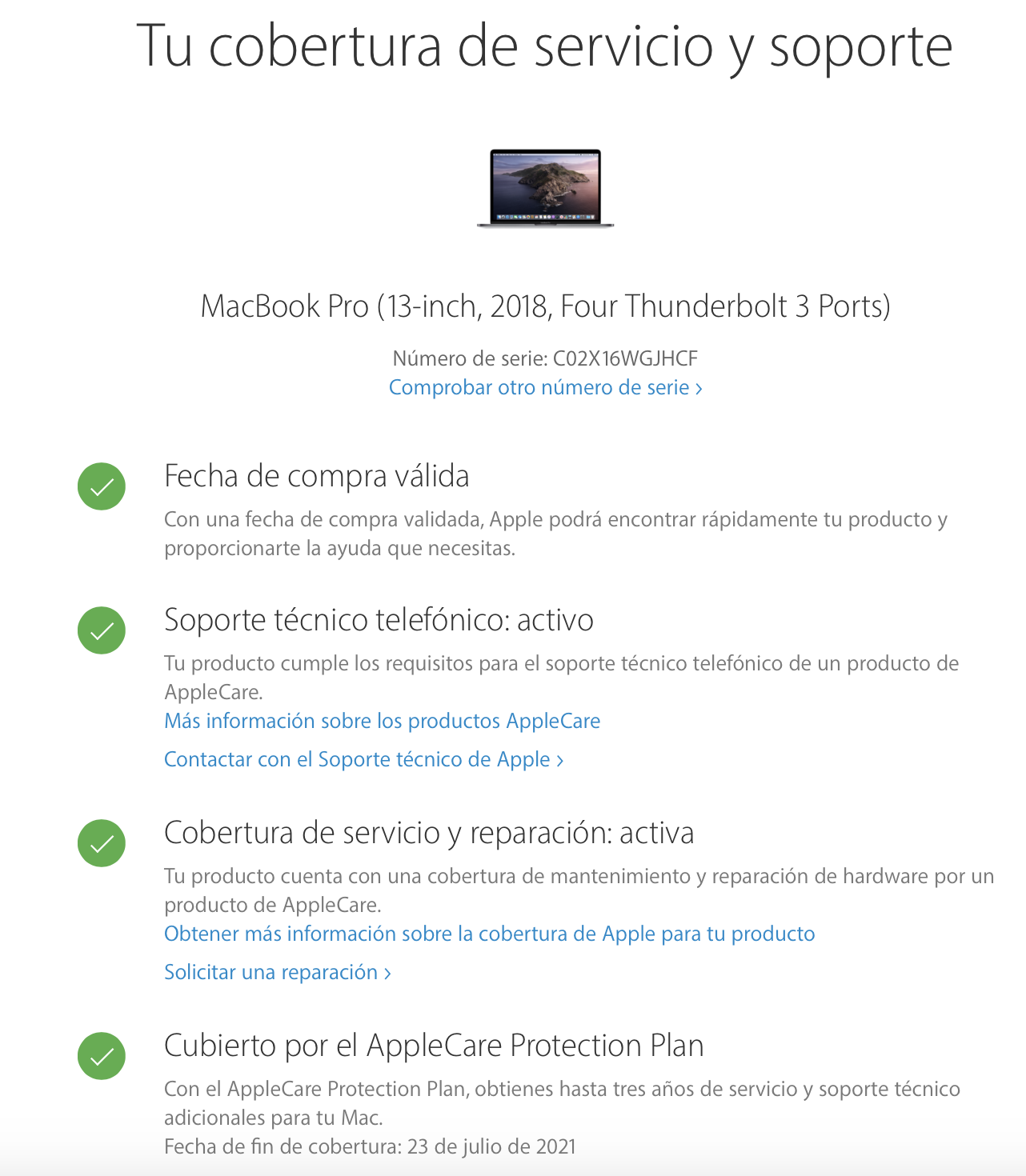 Buen estado y garantía AppleCare hasta 13 de julio de 2021