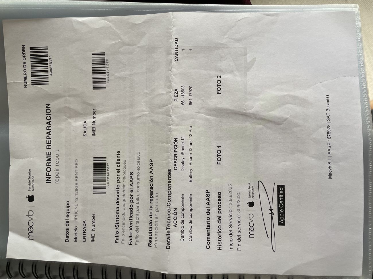 Pantalla original nueva, instalada en Apple (no recambios genéricos).