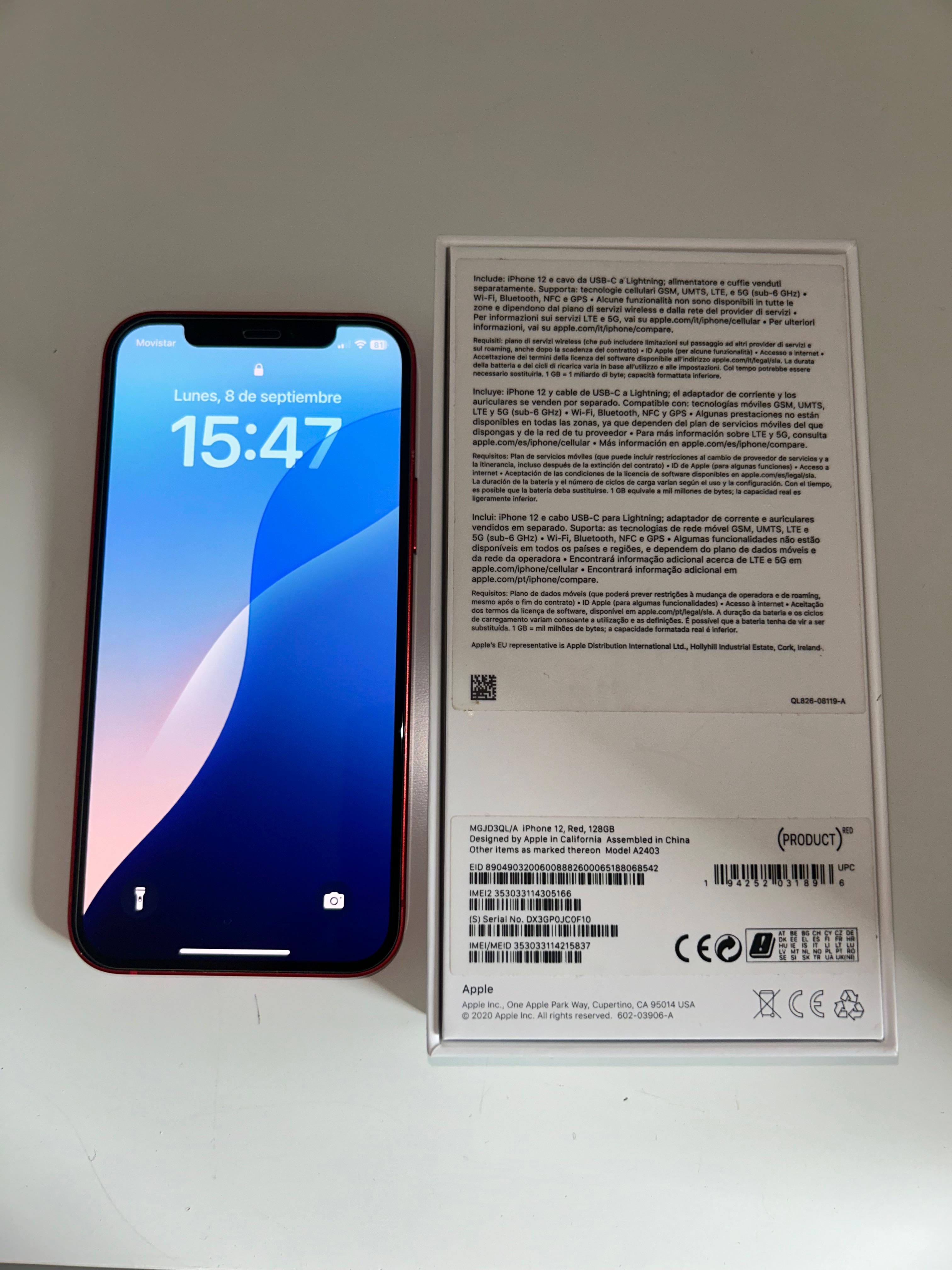Vendo iPhone 12 de 128 GB, color rojo, en estado impecable.