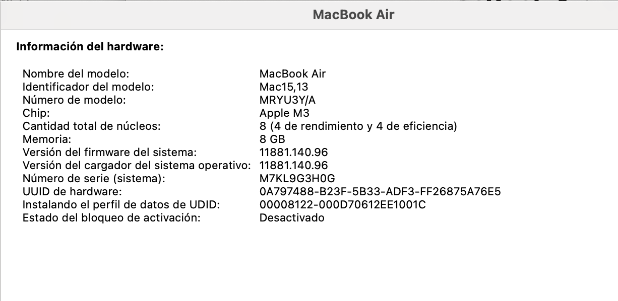 UUID de hardware: 0A797488-B23F-5B33-ADF3-FF26875A76E5