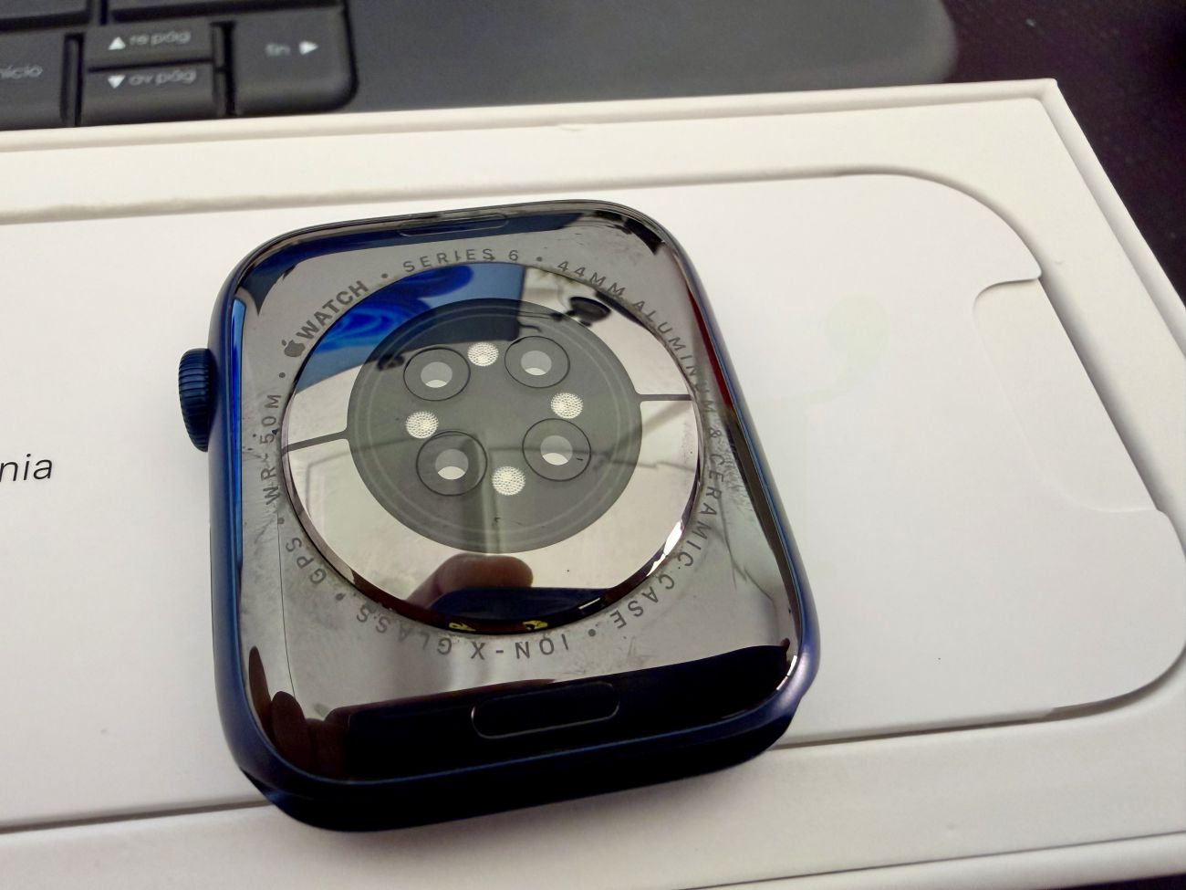 Apple Watch S6 Blue Aluminum Case 44mm. Correa no usada nunca tal y como se puede ver en la foto. Conserva el precinto de garantía. Comprado en el Corte Inglés. Garantia caducada. Funciona perfectamente. Algunas marcas del uso en la carcasa y esquinas. El cristal esta intacto. Lo vendo porque he cambiado al Watch Ultra 3.