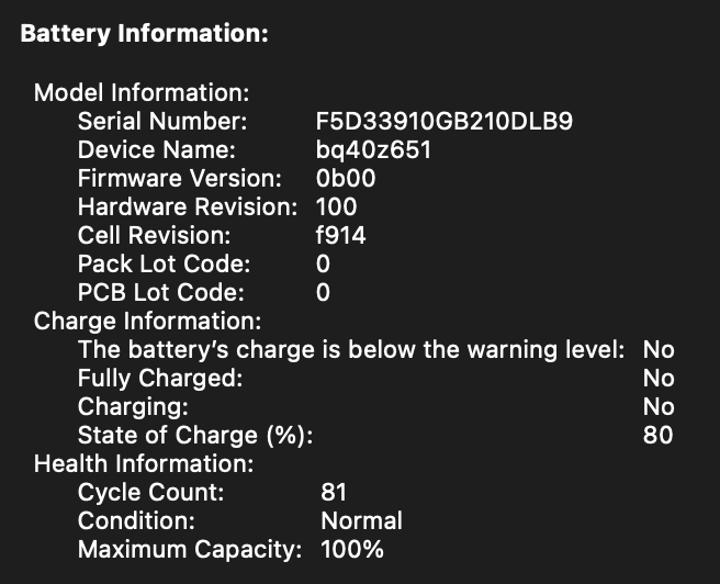 Estado: Batería 100% de capacidad máxima (81 ciclos). Sin arañazos o golpes.