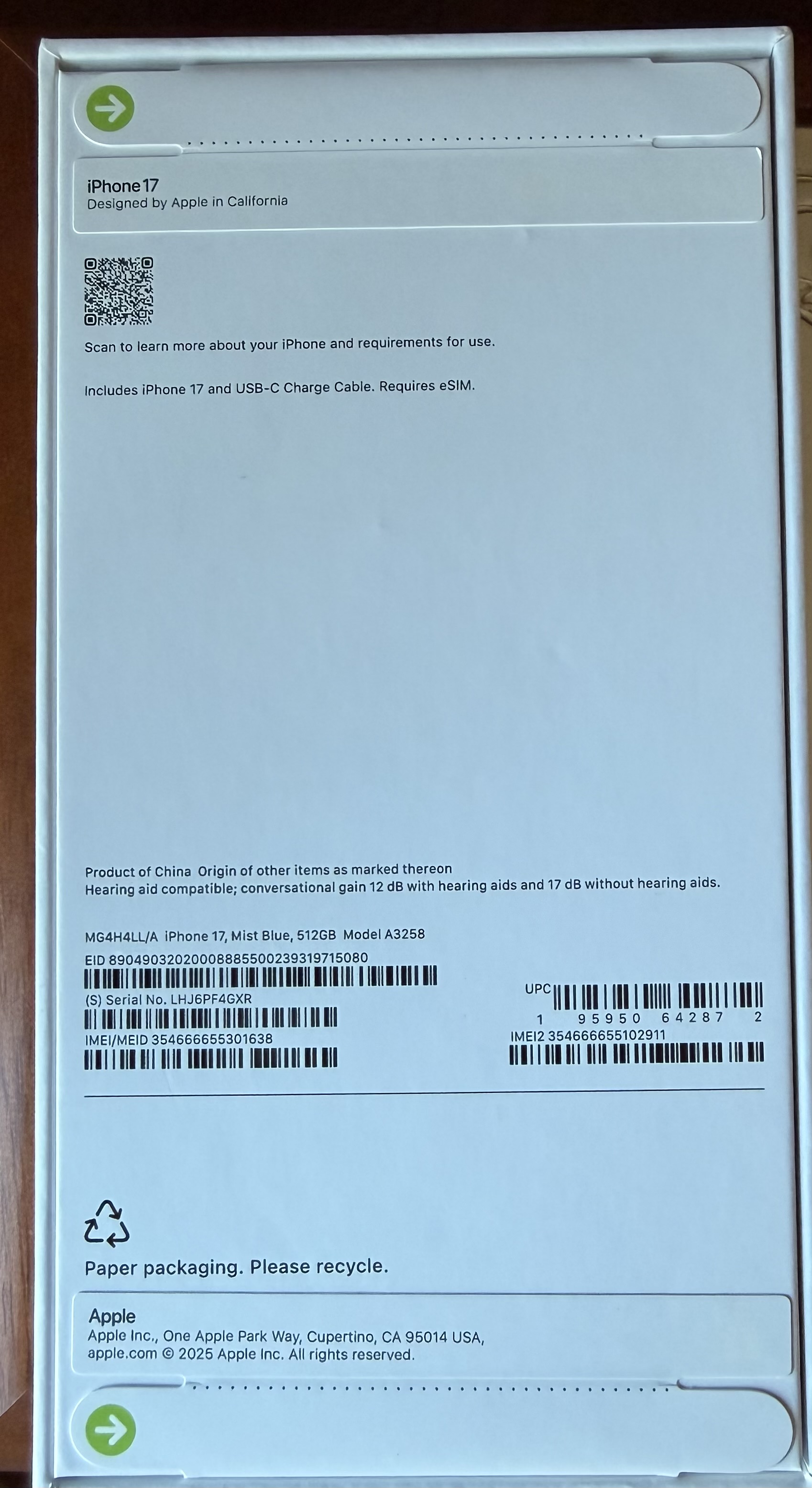 iPhone 17 512GB Mist Blue, se vende nuevo a estrenar, en su caja todavía precintada.