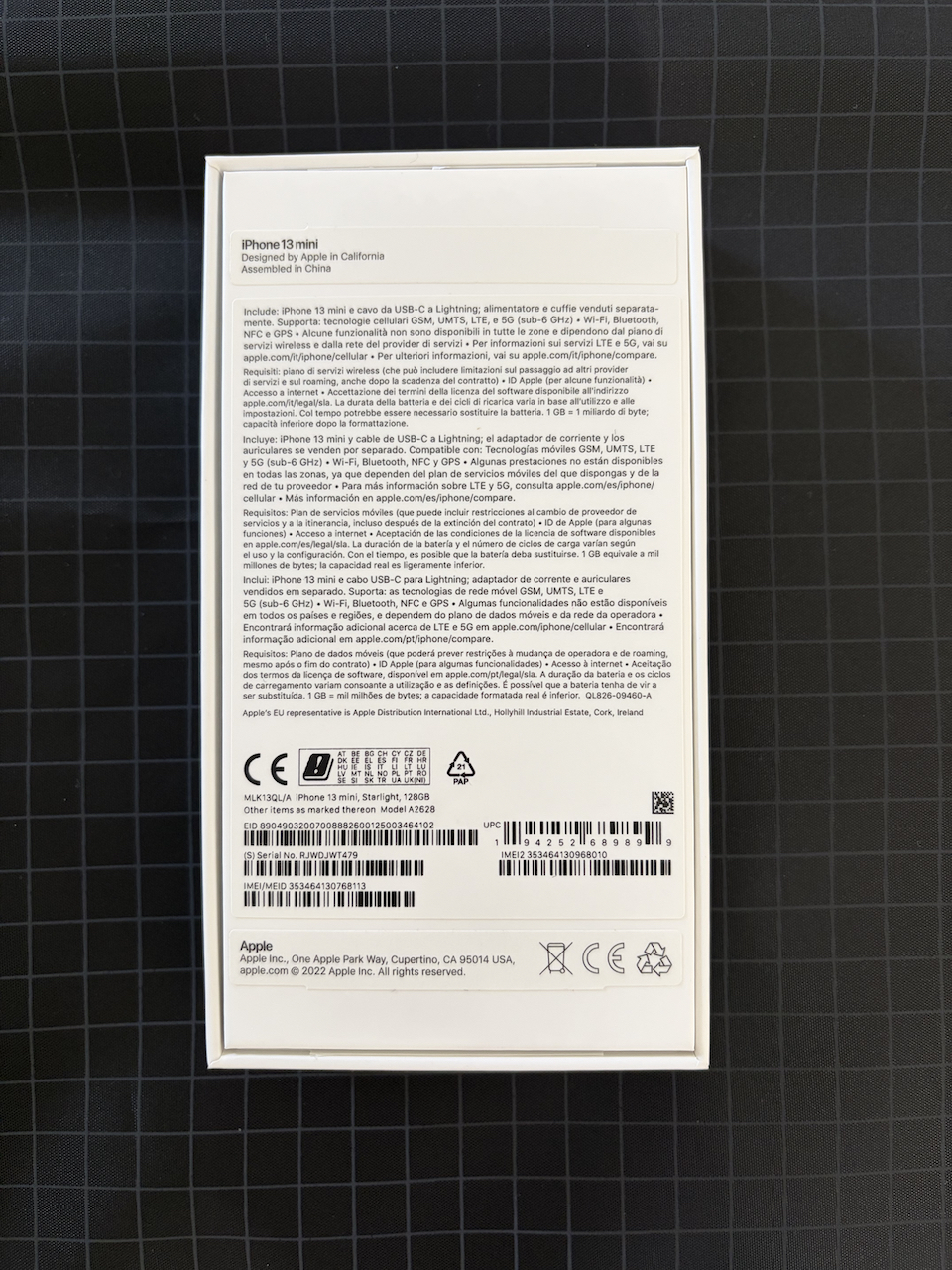 En perfecto estado; leves muescas en el aluminio de las esquinas. Batería en estado de salud al 83% de carga. Se vende con cargador original + cable de carga + auriculares conecto lightning. Por supuesto, con caja original.