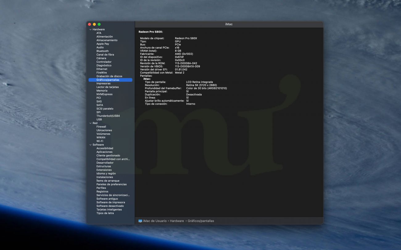 • Gráfica Radeon Pro 580X con 8 GB de VRAM