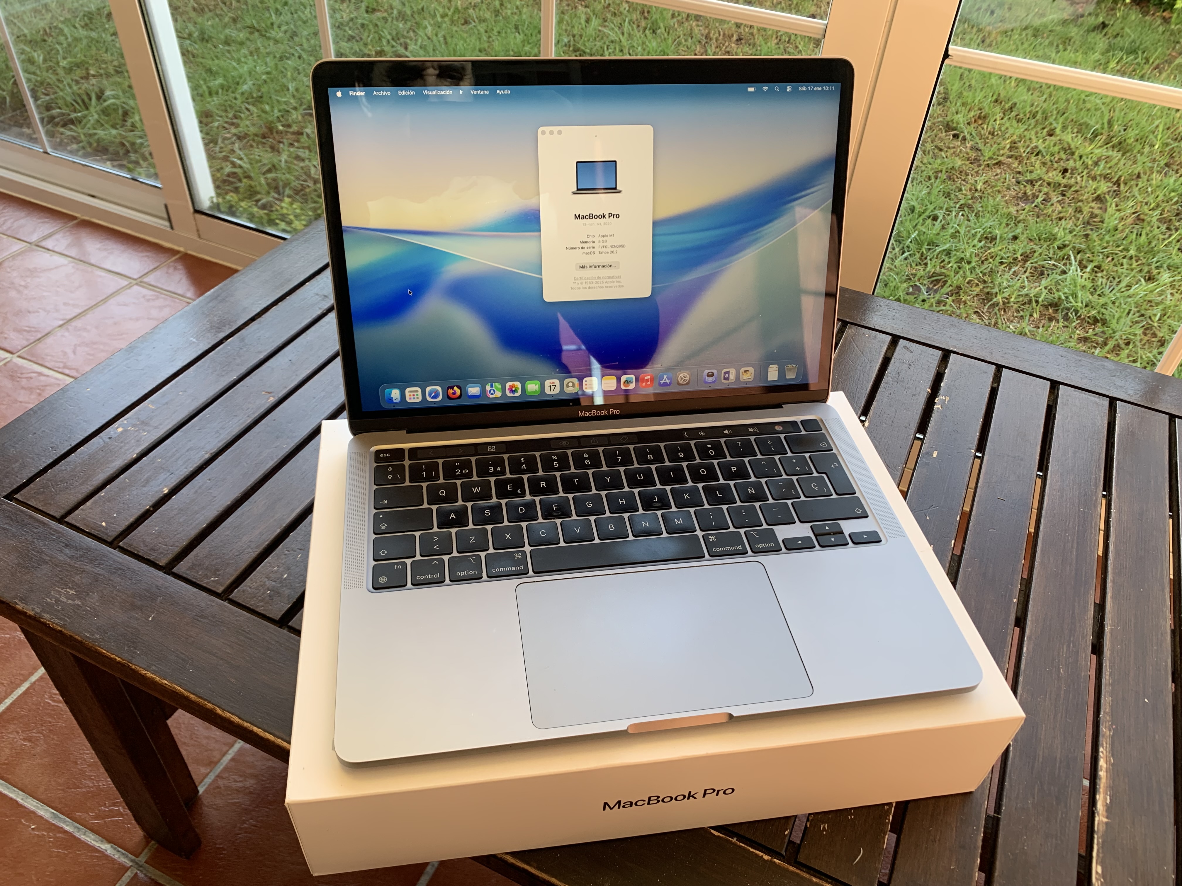 EApple MacBook Pro A2338,13”, M1, 2020. Color gris espacial, 8 GB de memoria RAM y 256 GB de disco duro SSD. GPU 8 núcleos. Dispone de 2 puertos Thunderbolt/USB 4 (USB-C), teclado Magic Keyboard retroiluminado con Touch Bar y Touch ID (lector de huellas) y salida de auriculares. Sistema operativo macOs Tahoe 26.2 En su caja original, con cable y cargador. Batería con varias horas de autonomía.