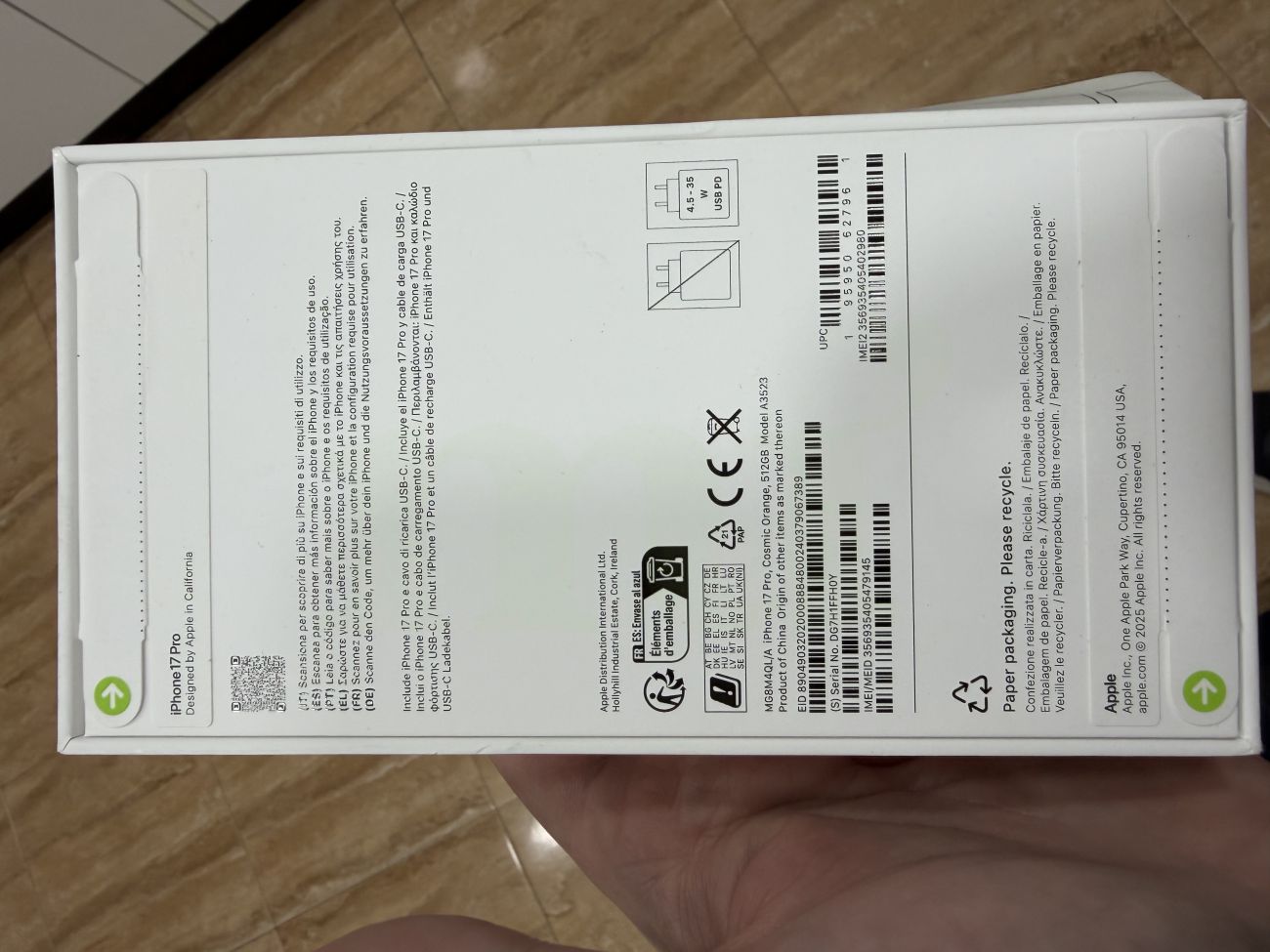 iPhone 17 Pro de 512 gb de color naranja sin abrir la caja.