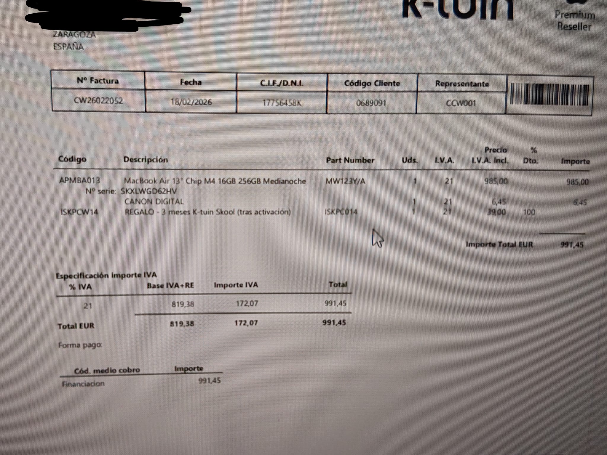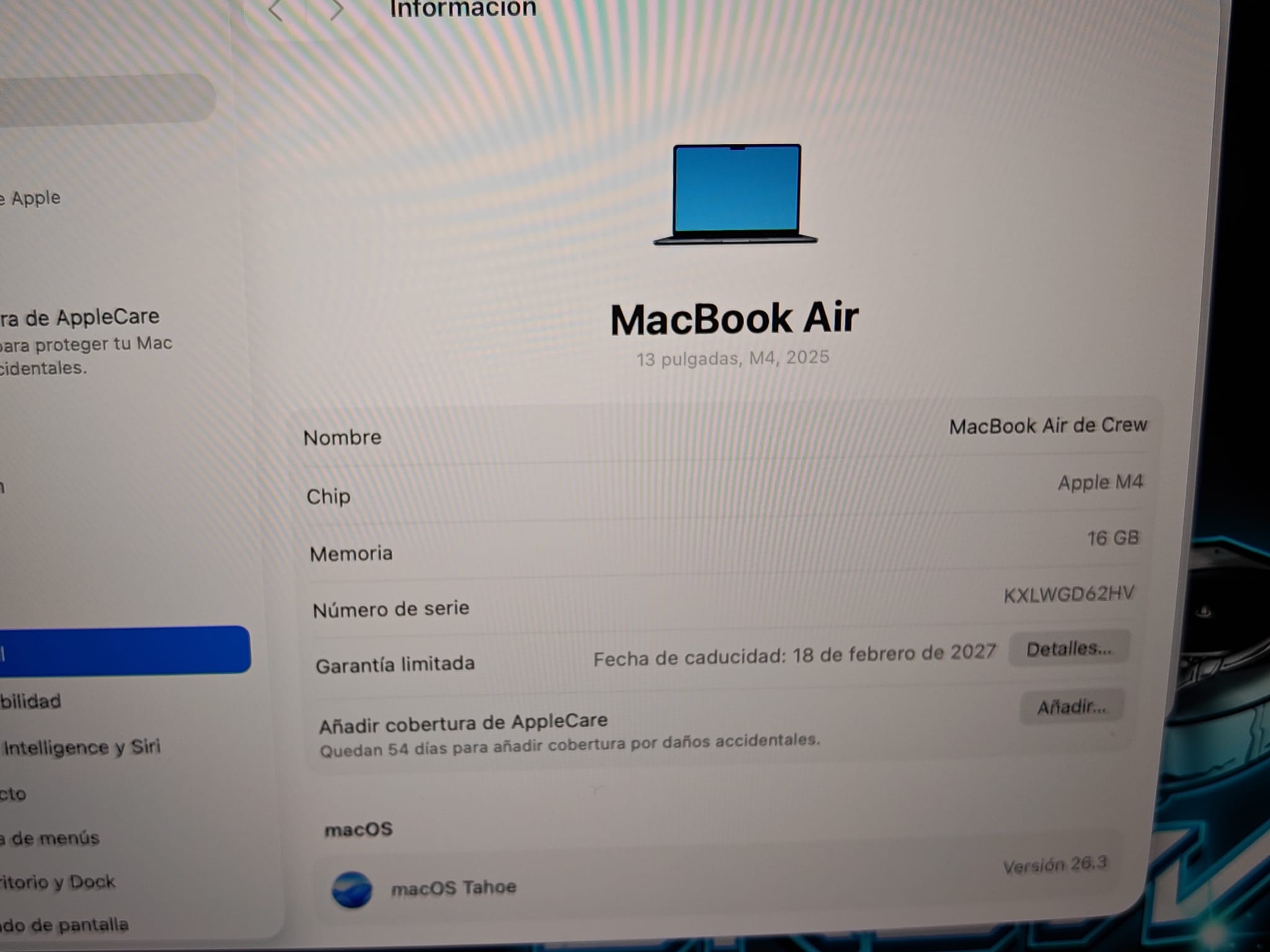 Macbook air m4 de 2025, tiene menos de 10 dias, 3 ciclos de carga, me empeño en intentar usar apple para pinchar y no me hago al sistema operativo ni a este tipo de ordenadores, desisto de el. Tiene 16 gb de ram y 256 gb de capacidad.