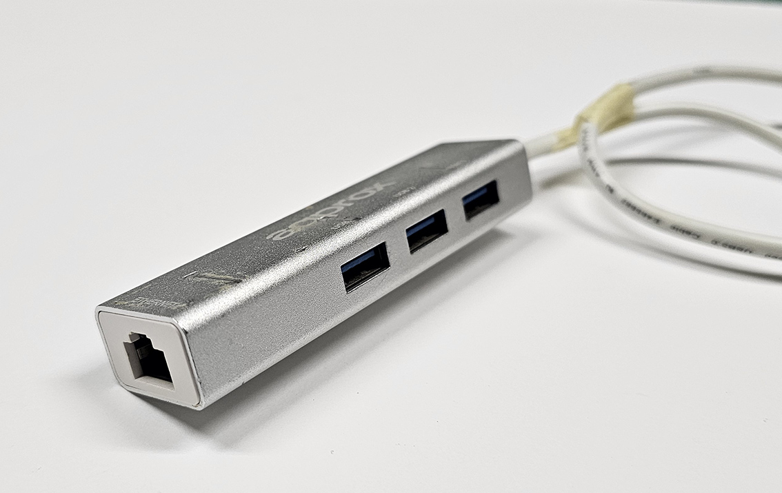Funciona perfectamente excepto la conexión de red por cable (RJ45), se puede conectar a internet por Wifi o mediante el conector plug & play incluido con velocidad 1000 Mb conectado a uno de los puertos USB que además hace de Hub USB de 3 tomas