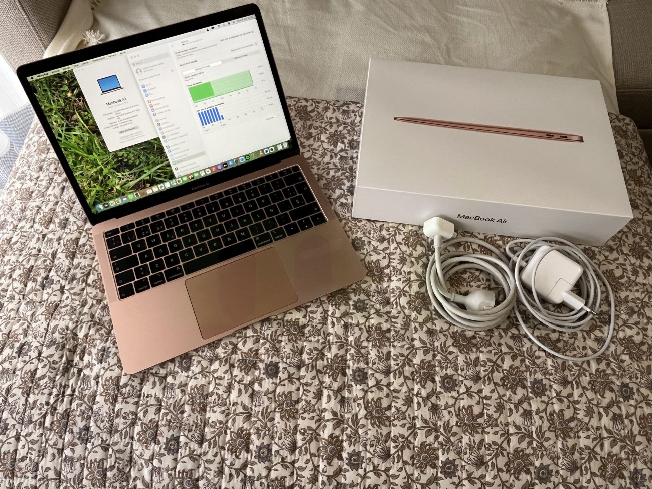 font dir="auto" style="vertical-align: inherit;">MacBook Air en color oro rosa, modelo de 2019 i5 8GB Incluye su caja cargador corto y largo.
