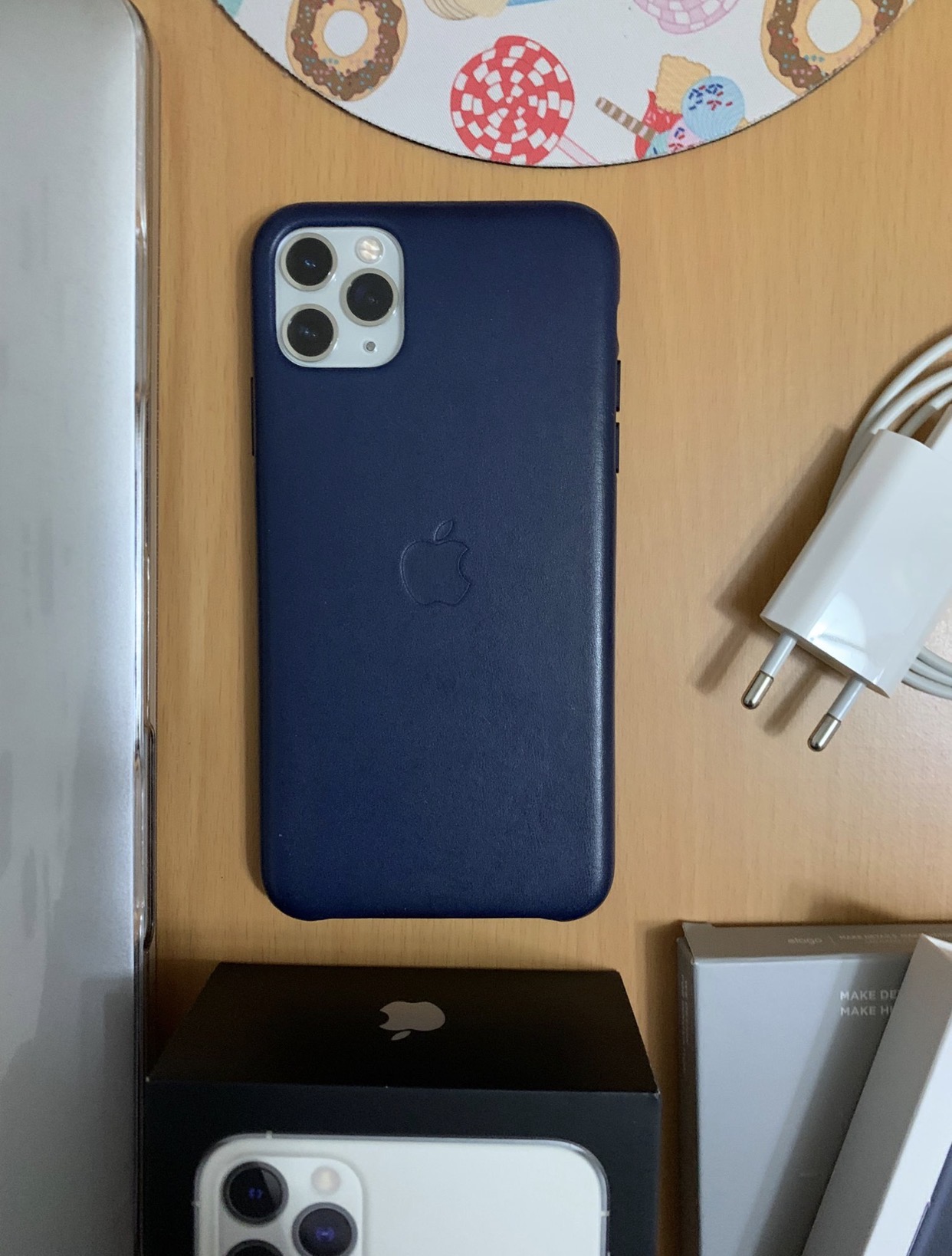 Caja, Cargador y Funda de piel Original se incluye otra funda de silicona color menta marca elago de Amazon