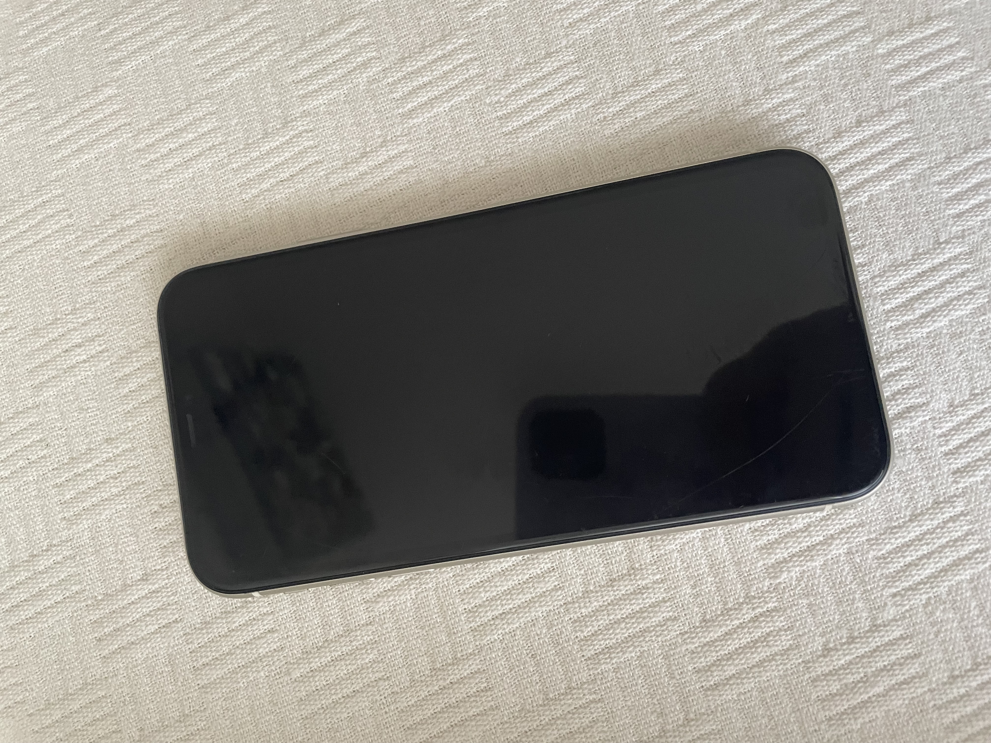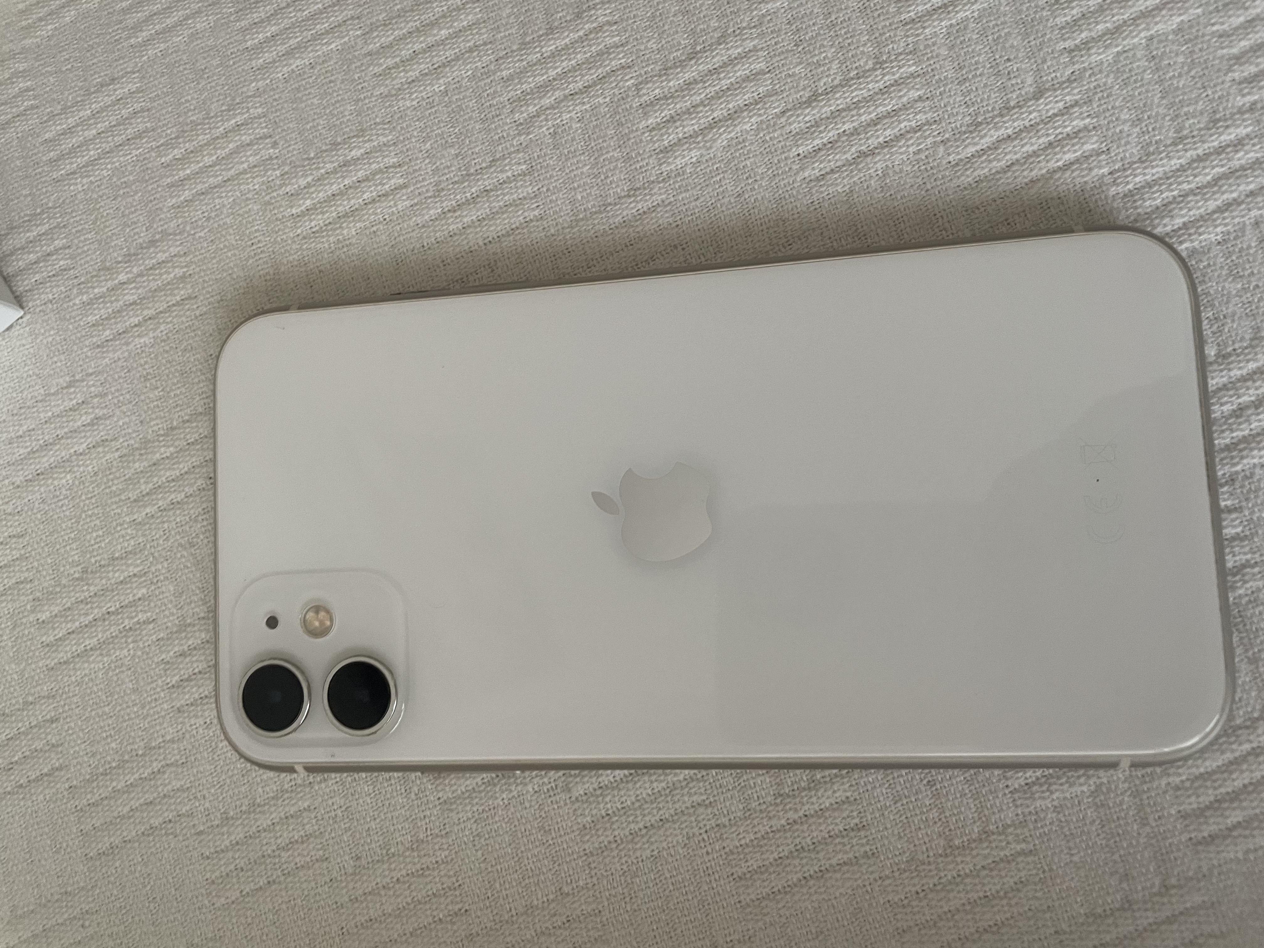 Teléfono móvil iPhone 11 en color blanco.