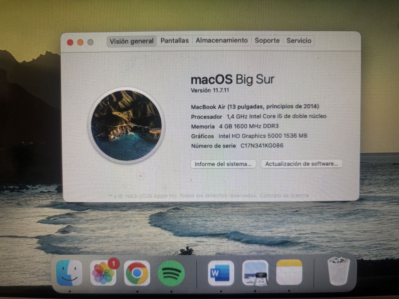 - Sistema operativo: macOS Big Sur